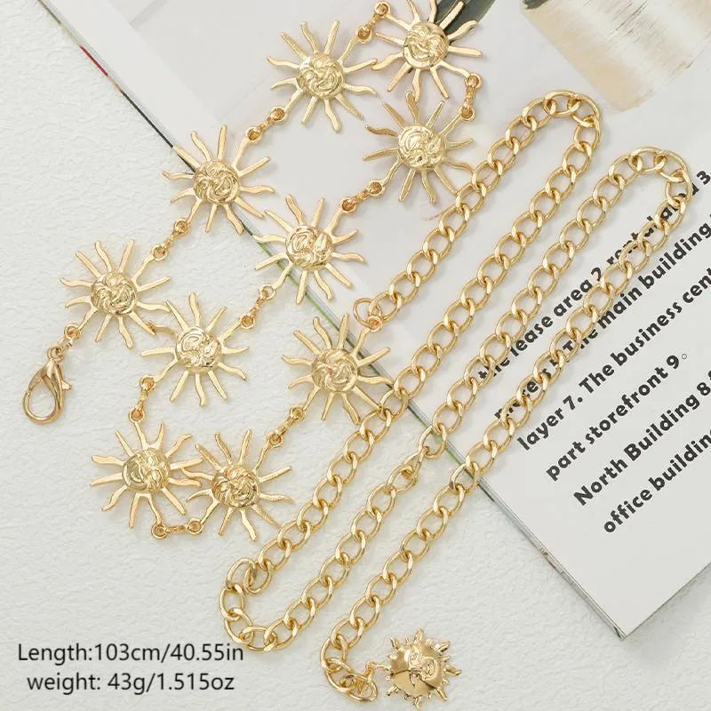 Artistic Sun Waist Chain – Bohemian Silver Alloy Belly Chain with Sunflower Charms