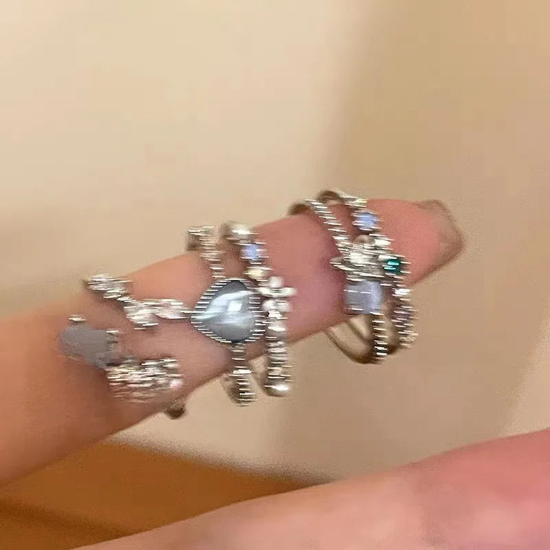 Blue Heart & Romantic Heart Gemstone Silver Ring – Pearl Accent Design