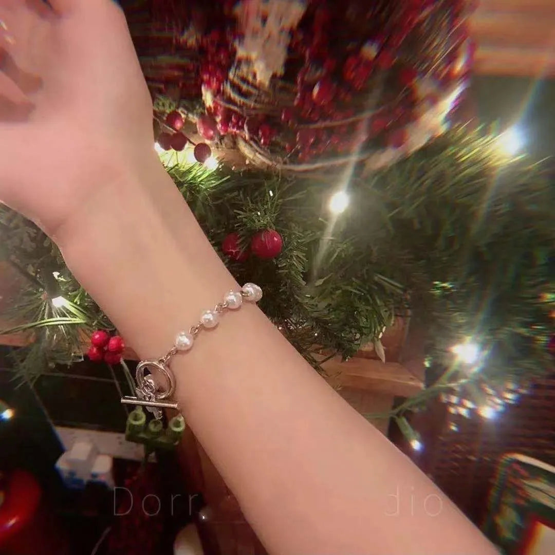 Butterfly Pearl Toggle Bracelet – Elegant Charm Chain Jewelry for Women