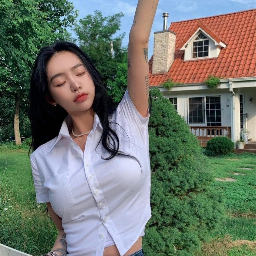 Women’s Classic White Short Sleeve Button-Up Blouse – Casual & Formal Essential