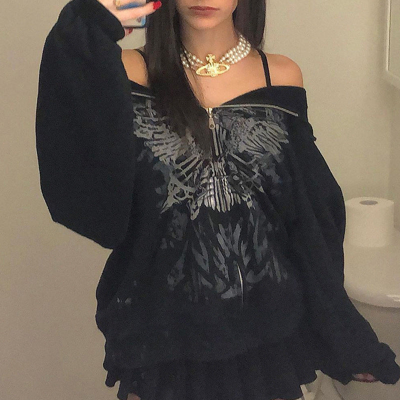 Women’s Punk Butterfly Print Hoodie – Long Sleeve Streetwear Pullover Sweatshirt