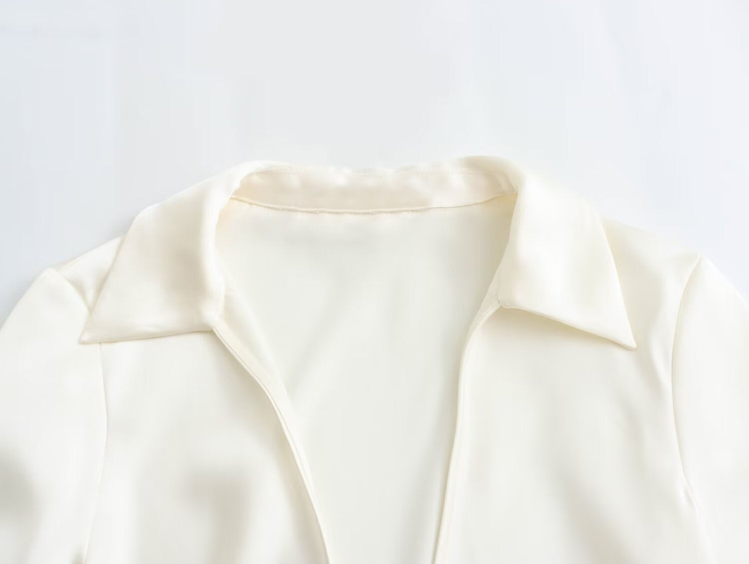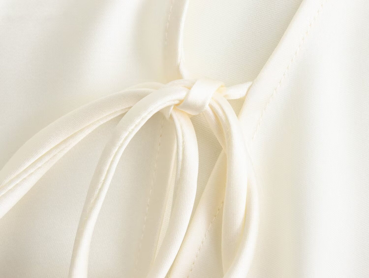 Women’s Satin Tie Front Blouse – Elegant Solid Color Long Sleeve top