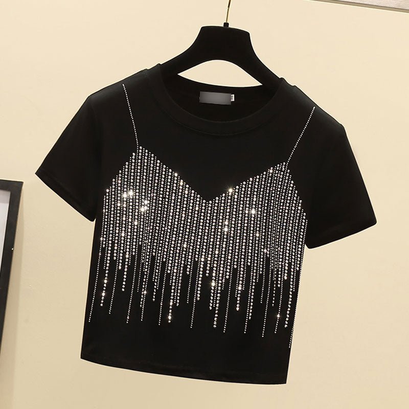 Women's Casual Solid Color T-Shirt – Short Sleeve Diamond Detail Fashion Top(Code: ZX#359)