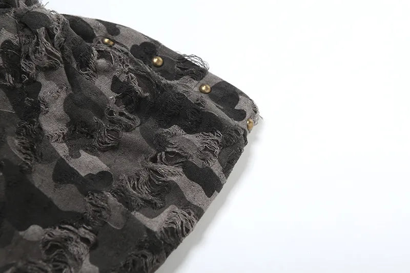 Women's Sexy Camouflage Strapless Corset Top – Off-Shoulder Backless Irregular Hem Bustier Vest