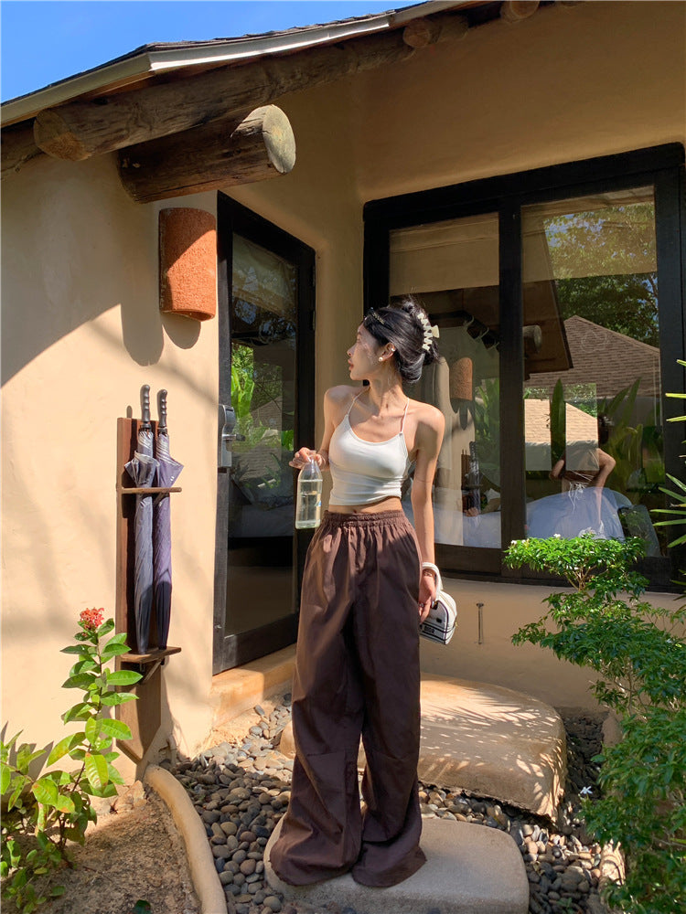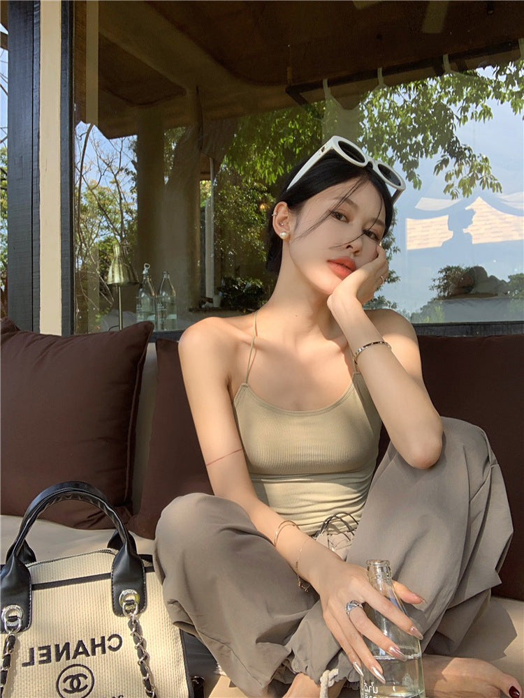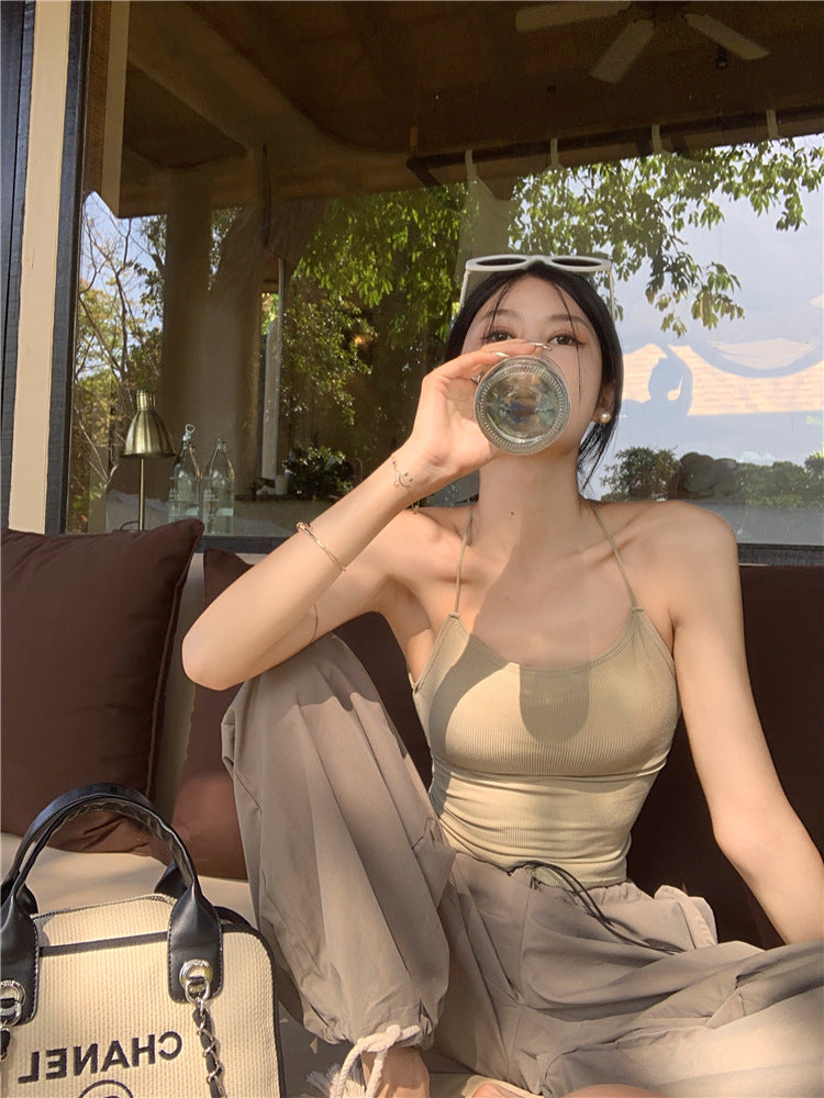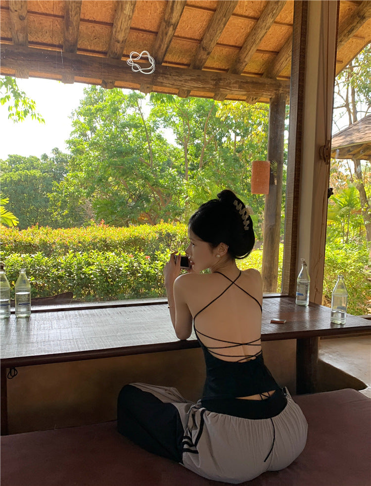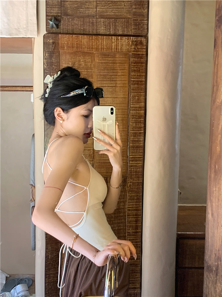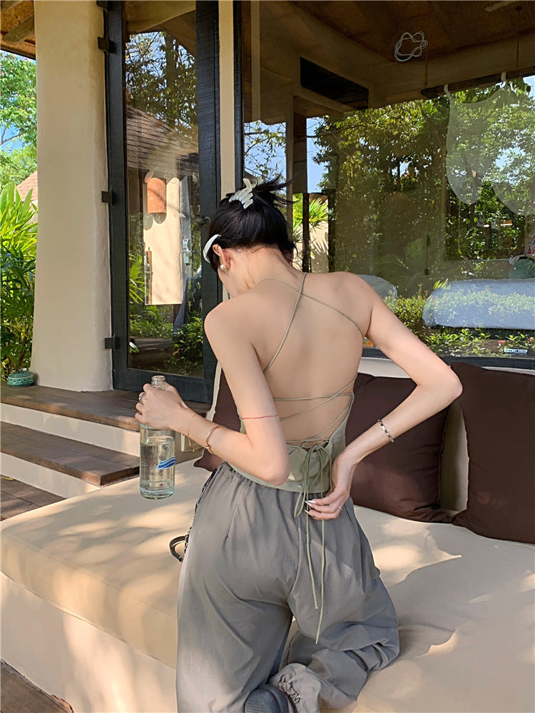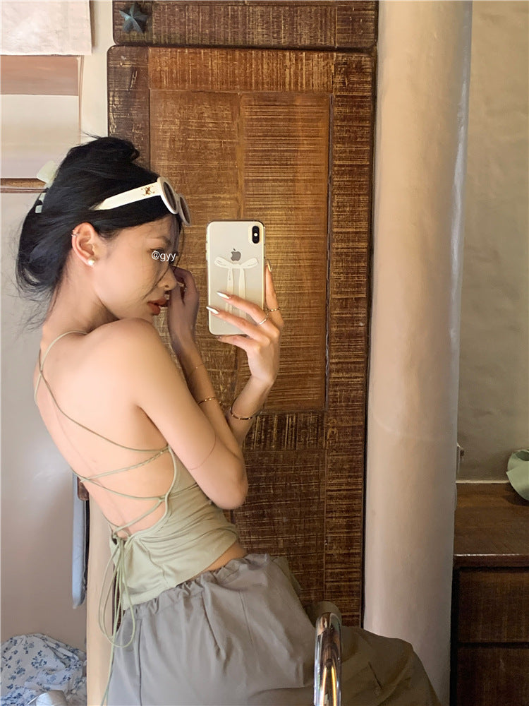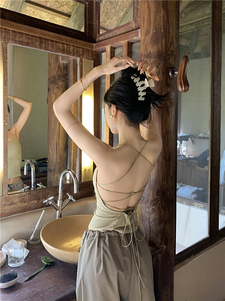 Women's Sexy Solid Color Strappy Ribbed Tank Top with Crisscross Back and Tie Detail